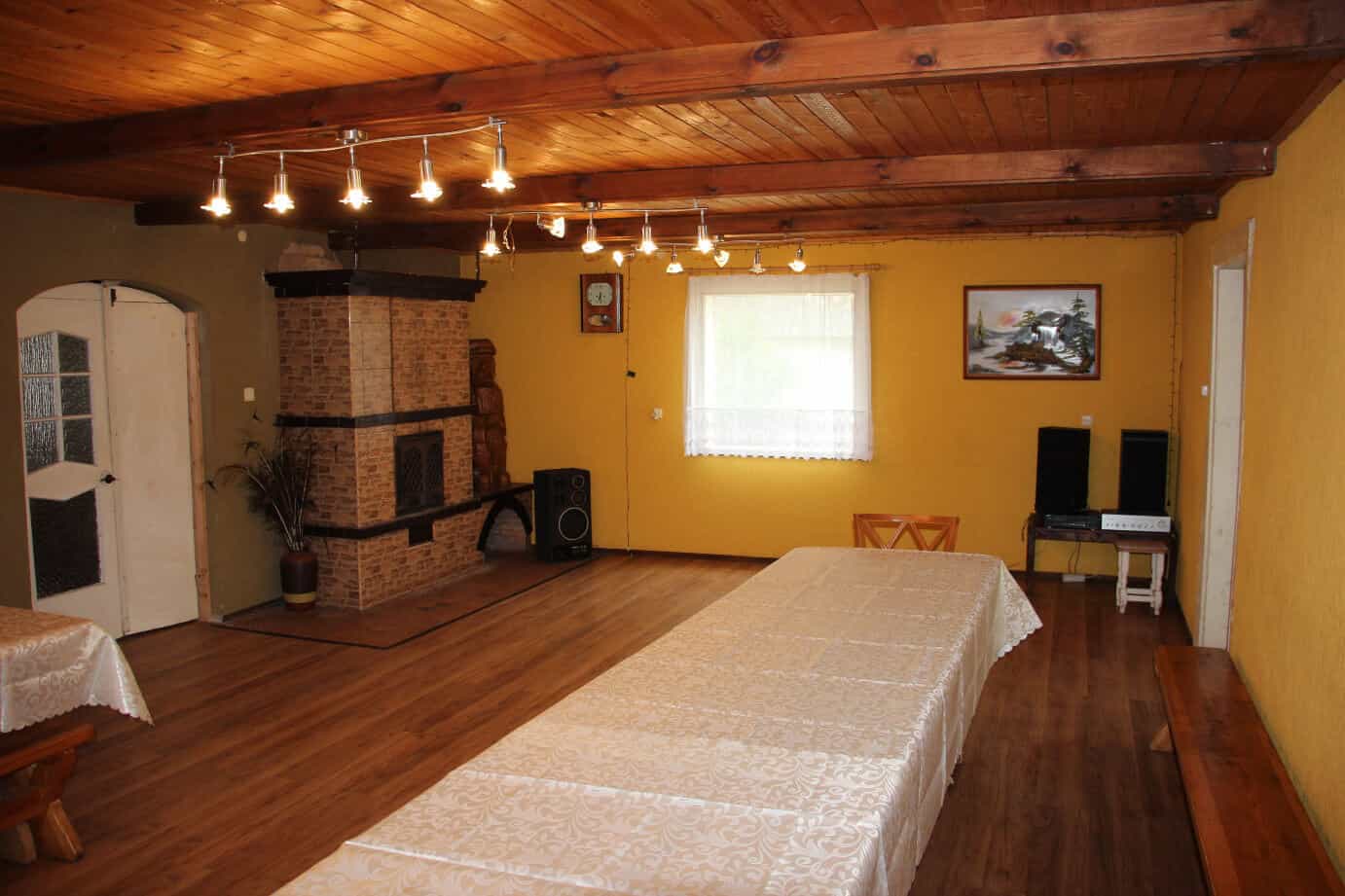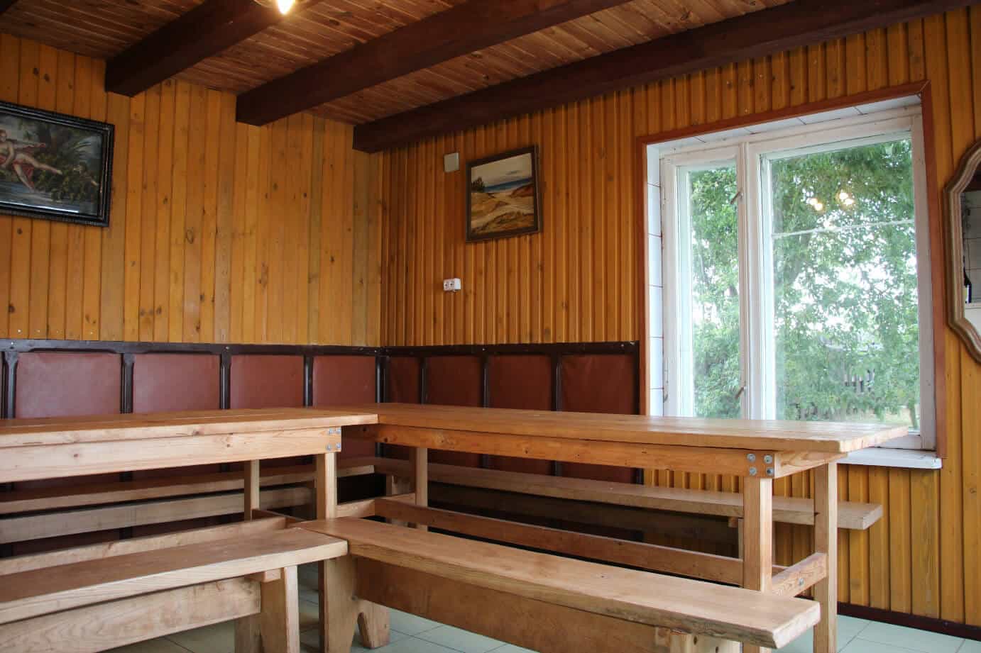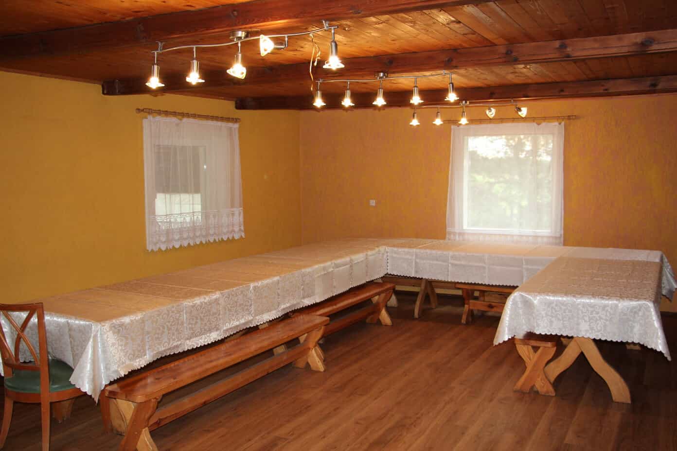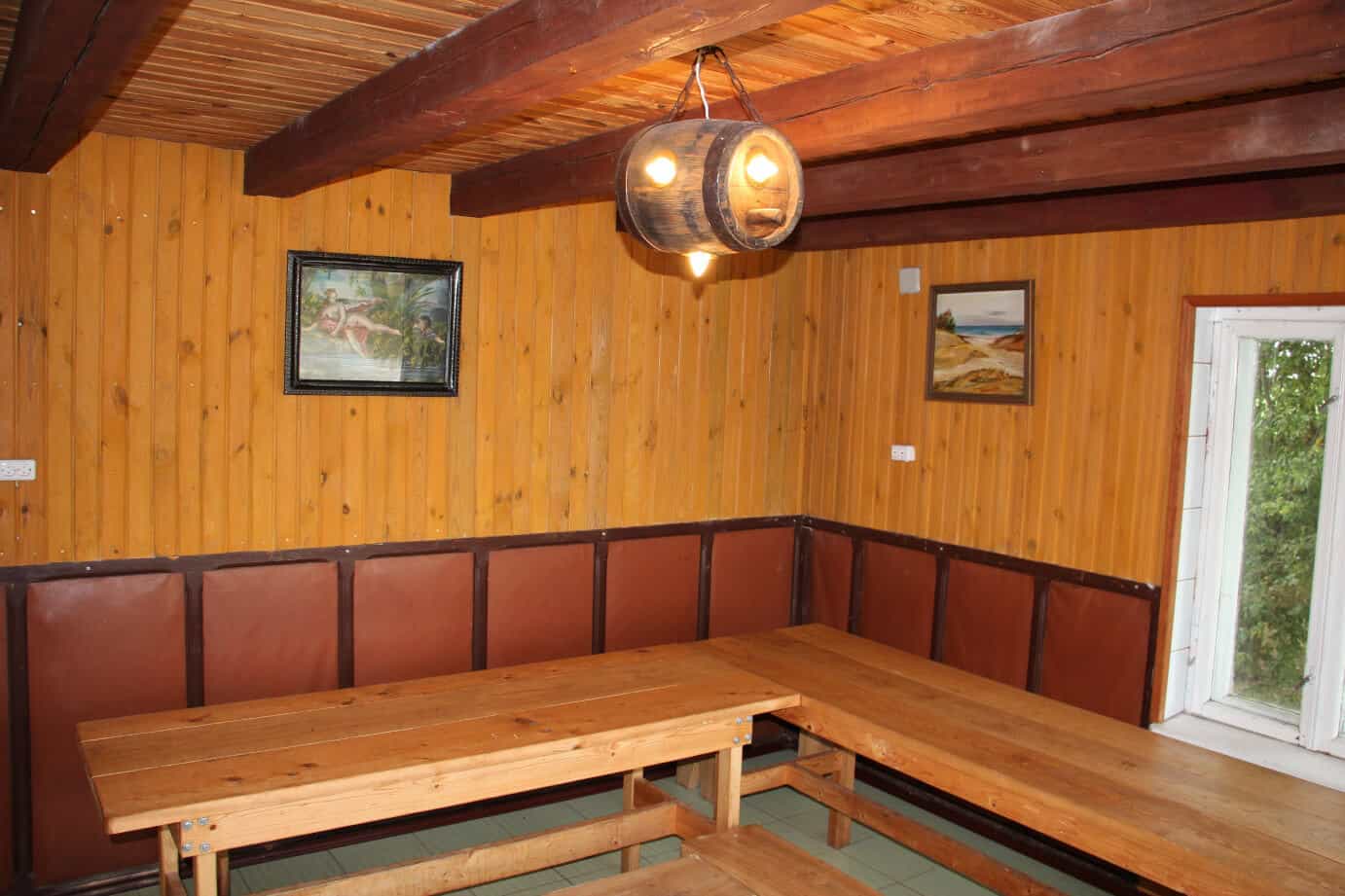Pobūvių salė talpinanti iki 50-ies žmonių, kartu yra lauko pavėsinė ir lauko židinys.